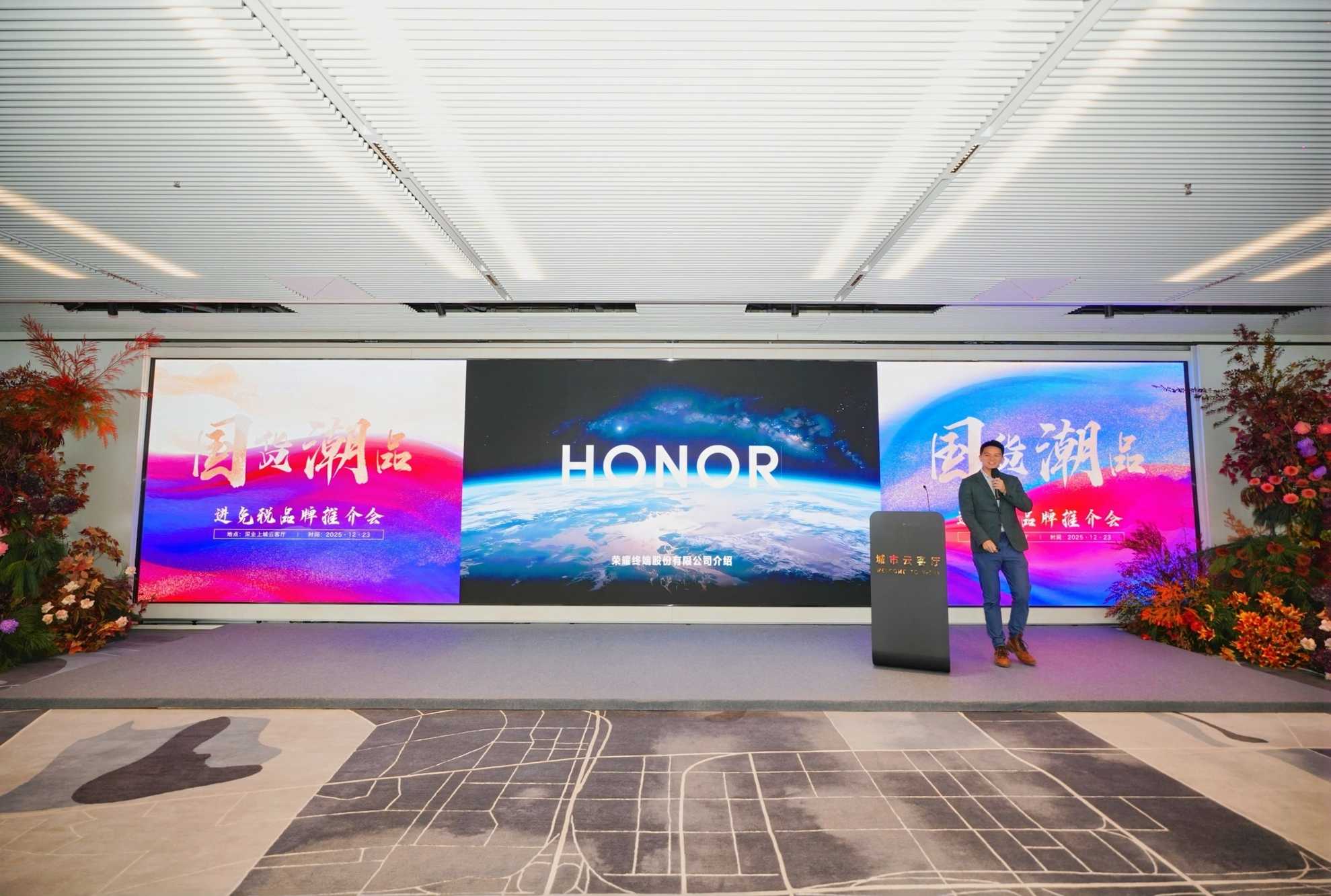 荣耀终端股份有限公司代表上台发布最新旗舰产品,阐述全球化科技美学理念